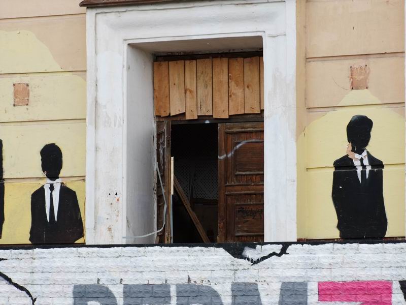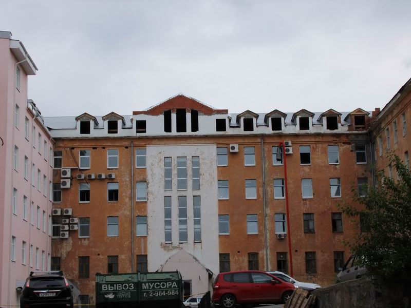 Когда-то КПП, бюро пропусков, карпом. Сейчас делают ресторан. Нетрадиционный окрас.