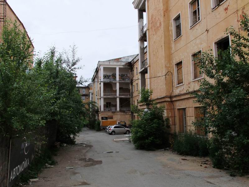 Слева - спортзал, справа - казармы 1-го и 4-го факультетов, вдали - второй корпус. Его ещё называли секретным.