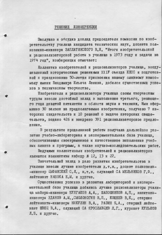 Конференция Изобретателей и Рационализаторов 1974 год