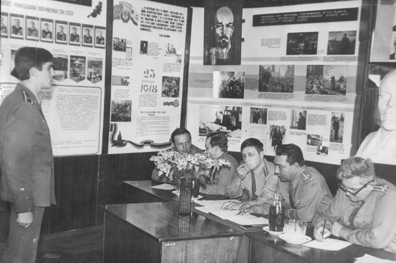 1984 год. Ленинская комната ф. 2. Распределение. П/п-к Масков В.И., к-Соболев А.Д., секретарь комитете ВЛКСМ факультета 2,